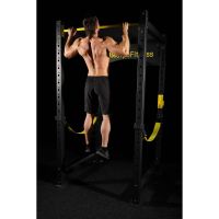 - Силовая рама оснащена регулируемыми по высоте страховочными упорами и фиксаторами для штанги, которые можно подстраивать под рост спортсмена или под конкретные тренировки, так же это позволяет установить скамью для выполнения упражнения жим из положений сидя или лежа. Вверху силовой рамы расположен турник. Страховочные упоры сделают упражнения со штангой более безопасными и менее травмоопасными для спортсменов.