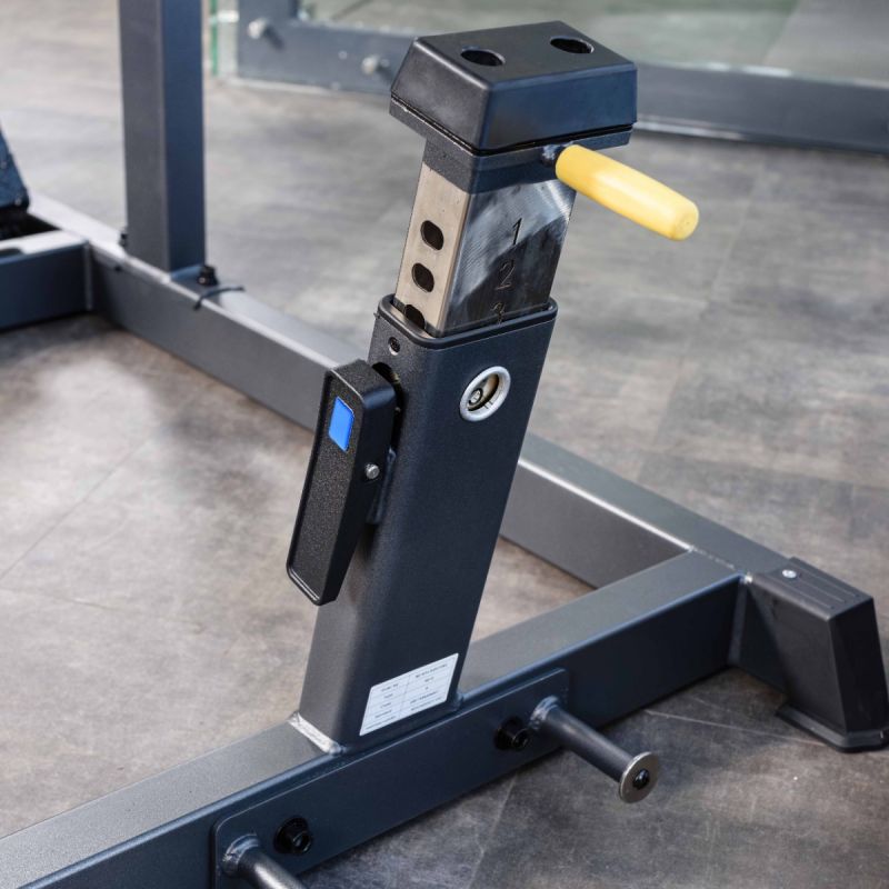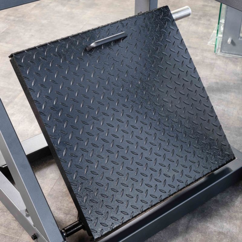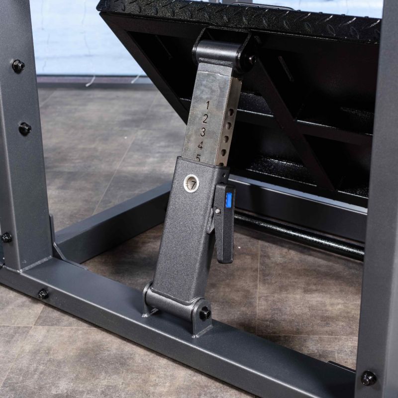 Тренажер обеспечивает глубокую и контролируемую траекторию приседа, позволяя эффективно прорабатывать квадрицепсы, ягодичные мышцы и заднюю поверхность бедра. Регулируемая по углу платформа помогает подобрать оптимальное положение стоп, а высокая спинка и подушки под плечи надёжно фиксируют корпус на протяжении движения. Стартовый фиксатор и демпферы делают тренировку безопасной, плавной и комфортной как для опытных спортсменов, так и для пользователей с разным уровнем подготовки.
