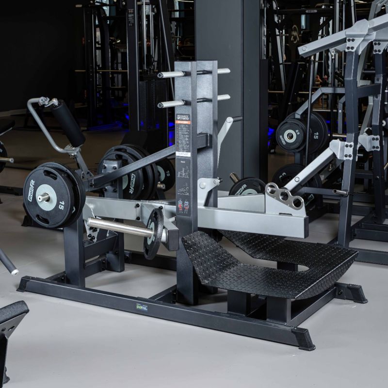 Тренажер для приседаний с поясом имитирует «колодец» за счёт погружения груза между двумя платформами для ног. При работе в тренажере со свободными весами основную нагрузку получают ягодичные мышцы, четырехглавые мышцы бедра, икроножные мышцы, при этом минимизирована травмирующая нагрузка на спину и поясницу. Акцент на группу мышц при выполнении упражнения можно сместить при помощи изменения точки крепления. Рычаг для быстрого старта и завершения упражнения позволяет менять точку крепления и нагрузку оставаясь в исходном положении.