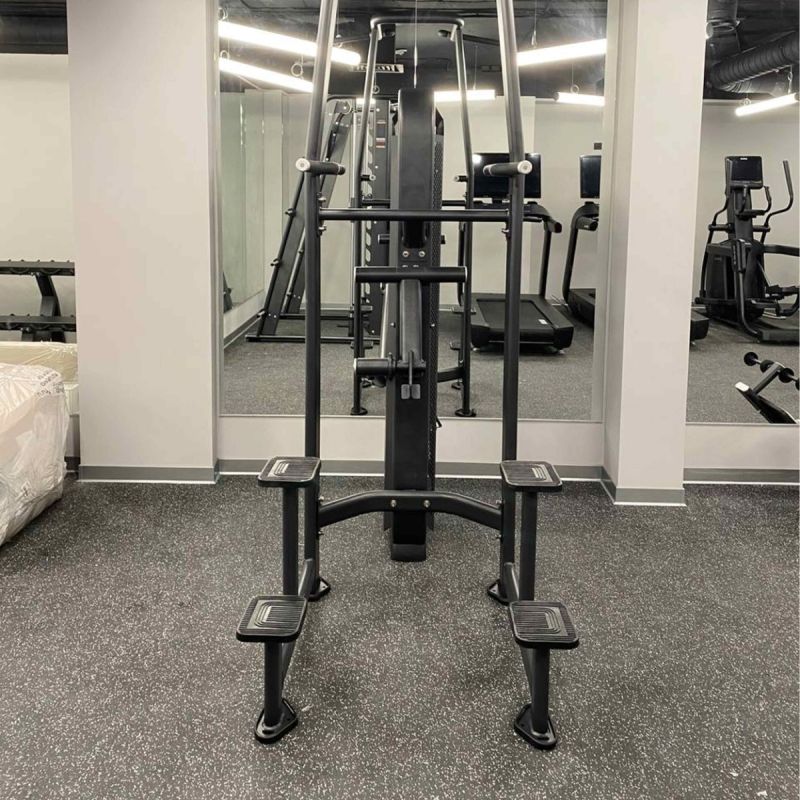 Профессиональный тренажер для коммерческого использования E7009 Турник, брусья с противовесом предназначен для облегченных отжиманий или подтягиваний разным хватом и задействует мышцы верхней части тела – широчайшие мышцы спины, дельтовидные, дельтовидные, трапециевидные и ромбовидные мышцы, бицепсы и трицепсы, большие грудные мышцы.
