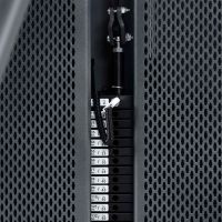 - Металлическая перфорированная защита весового стека с лицевой стороны и сплошная защита с внешней стороны выполнена из листового металла толщиной 2 мм. Для повышения эксплуатационных параметров тренажера в восьми точках у основания установлены ребра жесткости, примыкающие к несущей раме через скрытое болтовое соединение сечением 6 мм.