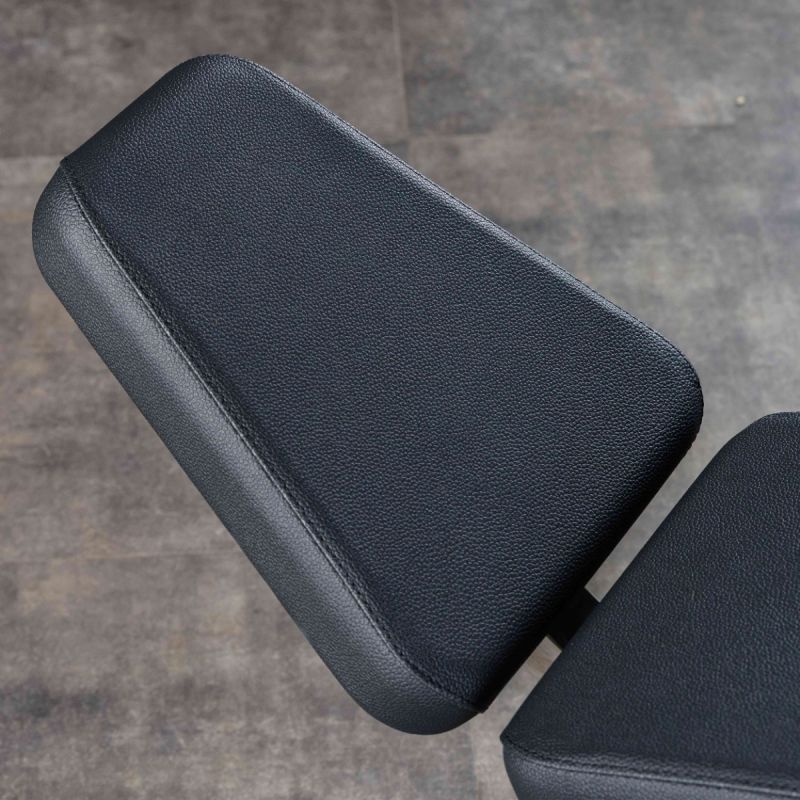 - Спинка прямоугольной формы длиной 830 мм и шириной 250 мм установлена под оптимальным углом, обеспечивающим естественную биомеханику жима и поддержку позвоночника. Поверхность обтянута износостойкой искусственной кожей, на центральной части размещена декоративная накладка с вышивкой логотипа FLEX.