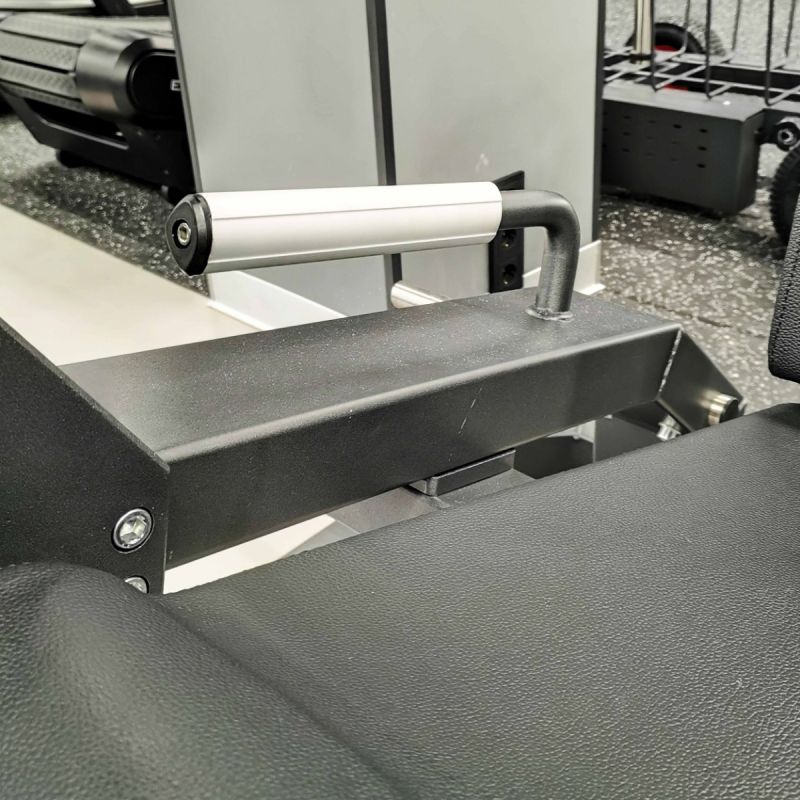 Тренажёр Разгибание ног сидя направлен на изолированное развитие квадрицепсов. Удобное сиденье с выступающим валиком под колени и опорная спинка помогают занять устойчивое положение и сохранять правильную технику выполнения упражнения. Валик для ног на подвижном рычаге обеспечивает комфортное движение, а боковые рукояти вдоль сиденья фиксируют корпус, исключая лишние движения. Конструкция проста в использовании и подходит как для начинающих, так и для опытных атлетов.