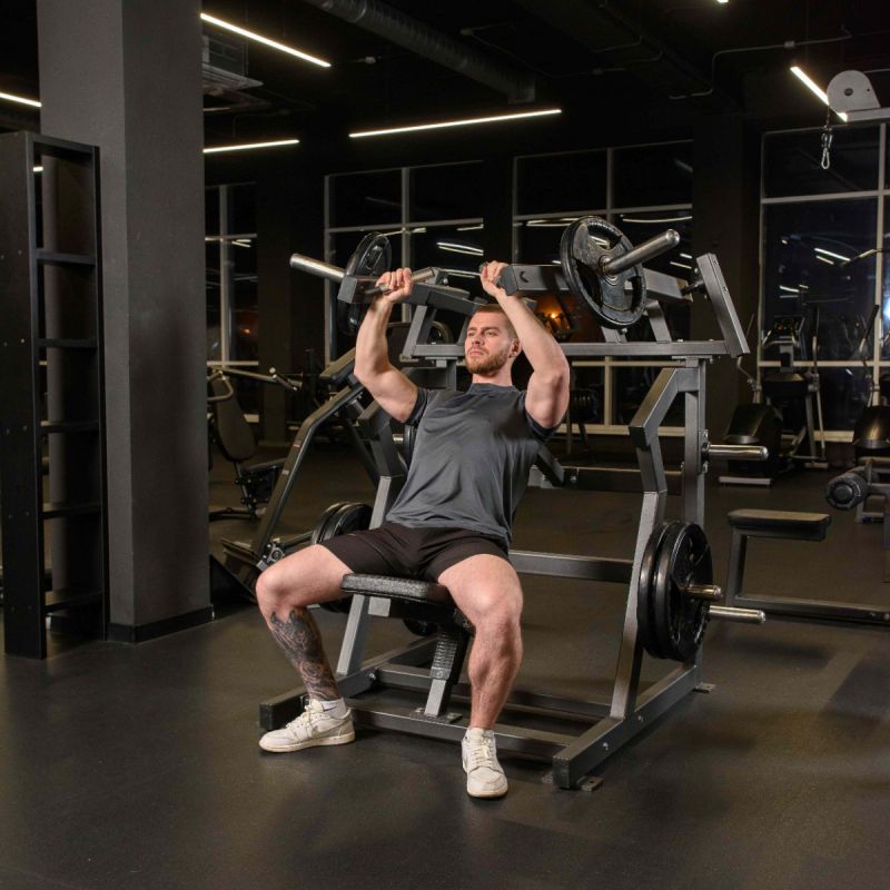 Независимый жим широким хватом благодаря восходящей траектории движения рычагов задействует верхнюю часть грудных мышц и переднюю часть плеча – большие грудные и передние дельтовидные мышцы. Движение схоже с подъемом руки при броске мяча в баскетбольное кольцо. Дополнительную нагрузку получают мышцы стабилизаторы: при выполнении упражнения важно удерживать спину в ровном положении, а пресс – в напряжении, чему способствует эргономичное сиденье и хват рукоятей.