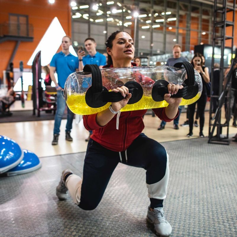 Движение жидкости в снаряде обеспечивает перемещение центра тяжести, что повышает эффективность и интенсивность нагрузок, а также активно нагружает мышцы стабилизаторы.