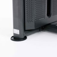 - Металлическая перфорированная защита весового стека с лицевой стороны и сплошная защита с задней стороны выполнена из листового металла толщиной 2 мм. Ребра жесткости у основания, примыкающие к несущей раме через скрытое болтовое соединение сечением 6 мм в восьми точках, повышают эксплуатационные параметры тренажера.