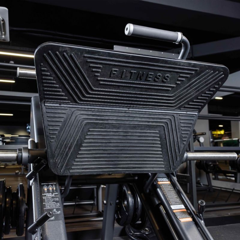В исходном положении спинка тренажера имеет угол наклона 45°, это самая оптимальная позиция для жима ногами (в сравнении с вертикальным и горизонтальным жимом). Тренажер позволяет избежать нагрузки на поясницу, при изменении положения и ширины постановки ног сместить акцент на целевые мышцы.