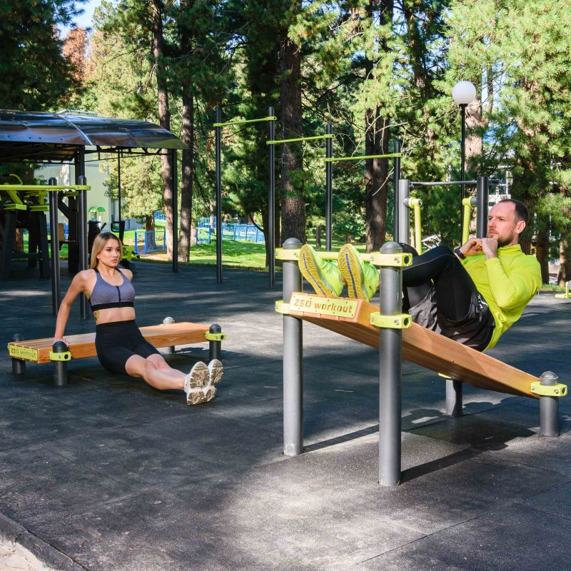 Прочная устойчивая скамья для выполнения отжиманий, упражнений на пресс или растяжки. Основание выполнено из древесины хвойных пород, обработанной для уличной эксплуатации. Подходит как самостоятельный элемент для оснащения площадки, так и как дополнение к комплексам для повышения комфорта и функциональности тренировочной зоны.